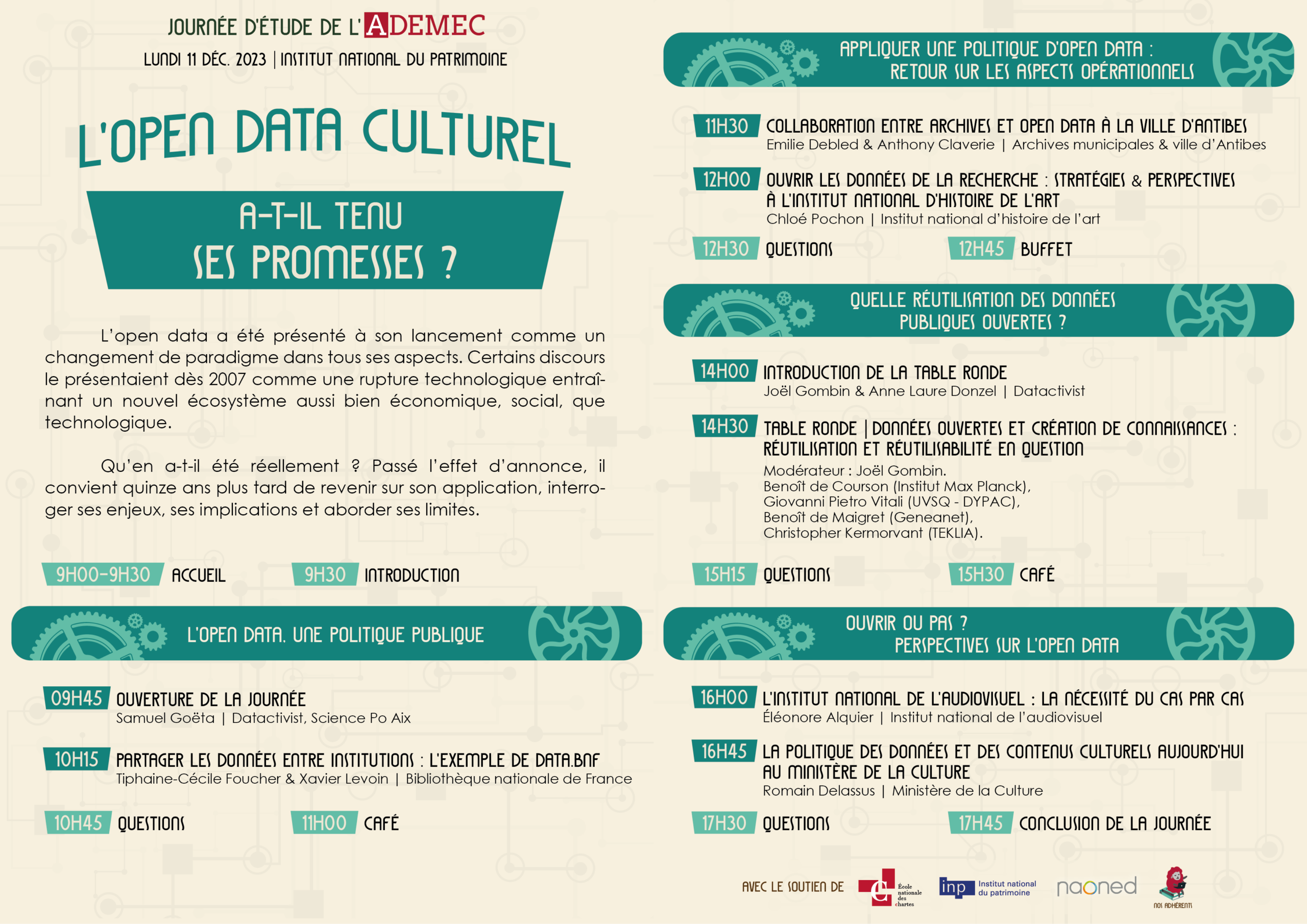 L’ADEMEC organise des manifestations scientifiques tous les 2 ans depuis 2017. Les journées d’étude sont des temps forts sur l’actualité des champs professionnels couverts par les masters : les humanités numériques en 2017, l’intelligence artificielle en 2019, l’Open Data en 2023.