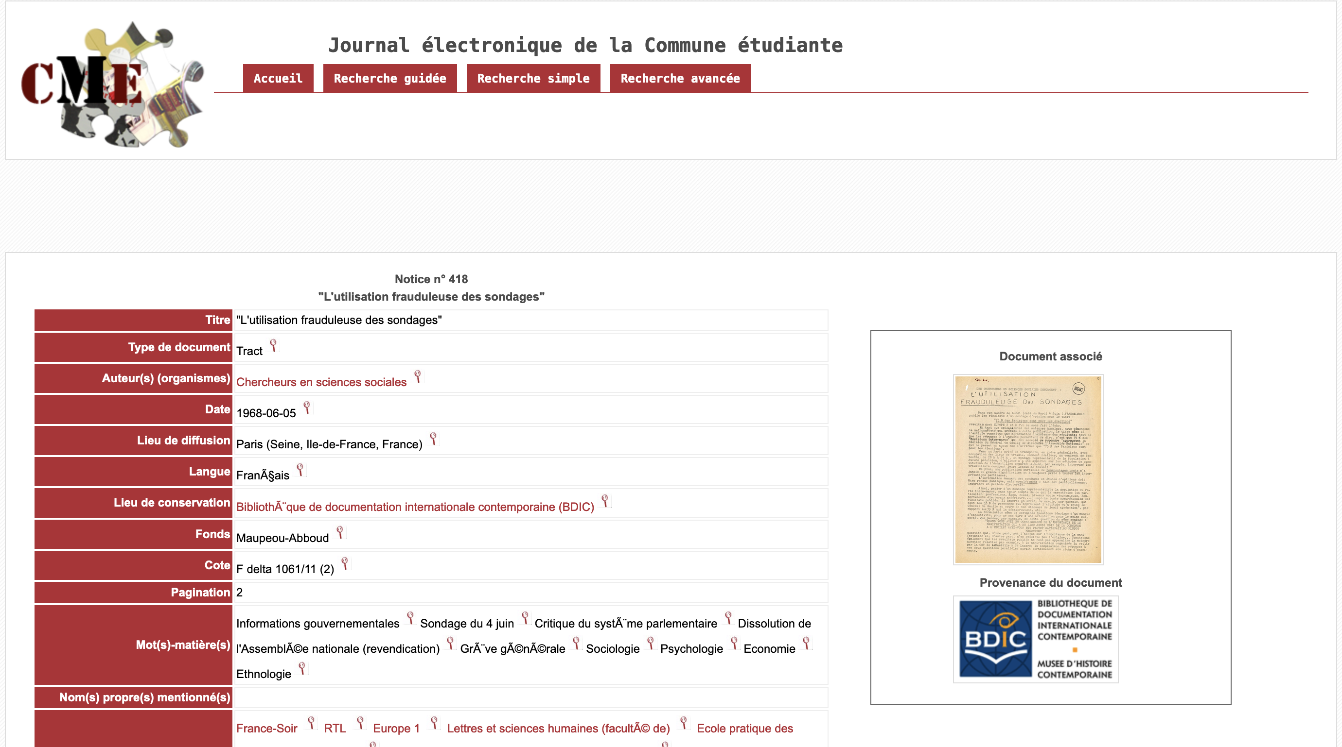 Base de données des expressions éphémères du mouvement étudiant de mai-juillet 1968